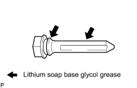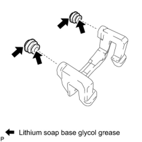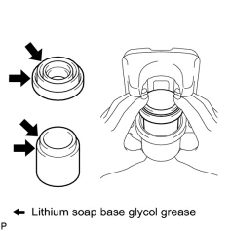 (a) Apply lithium soap base glycol grease to the seal surface of 2 new rear disc brake bushing dust boots.