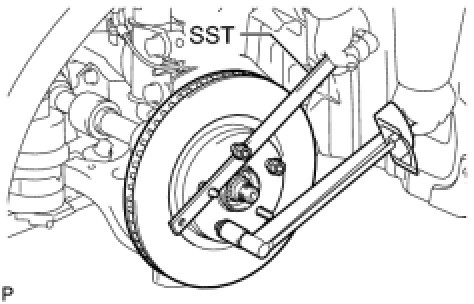 (a) Using SST to hold the disc, tighten the disc with the 3 hub nuts.