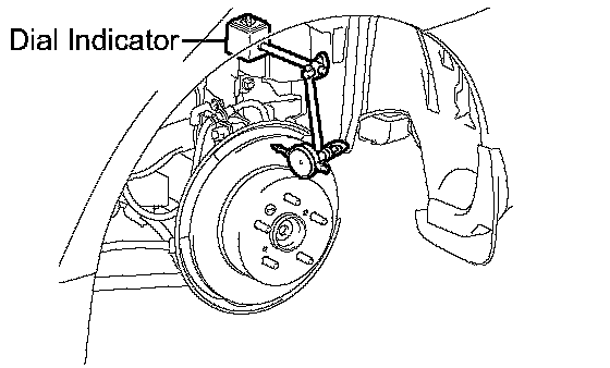 (c) Using a dial indicator, measure the disc runout 10 mm (0.39 inch) away from the outer edge of the rear disc.