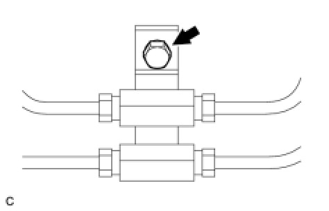 2. Hold the flexible hose with a wrench and disconnect the brake line with a union nut wrench without deforming the line.
