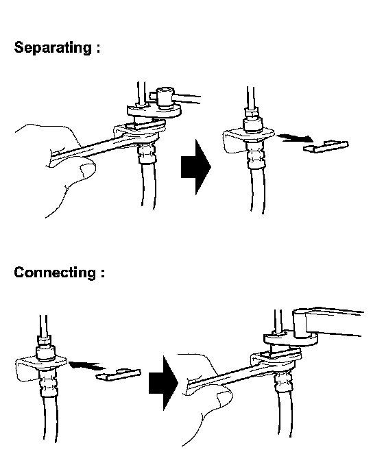 (a) Support the way to prevent deformation to the brake line and connect the brake line to the way with a union nut wrench.