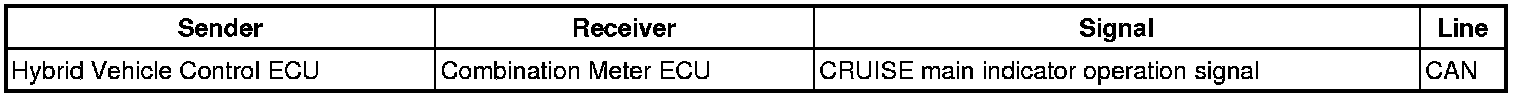 - The hybrid vehicle control ECU illuminates the combination meter's CRUISE main indicator light when it receives a cruise control main switch ON signal.