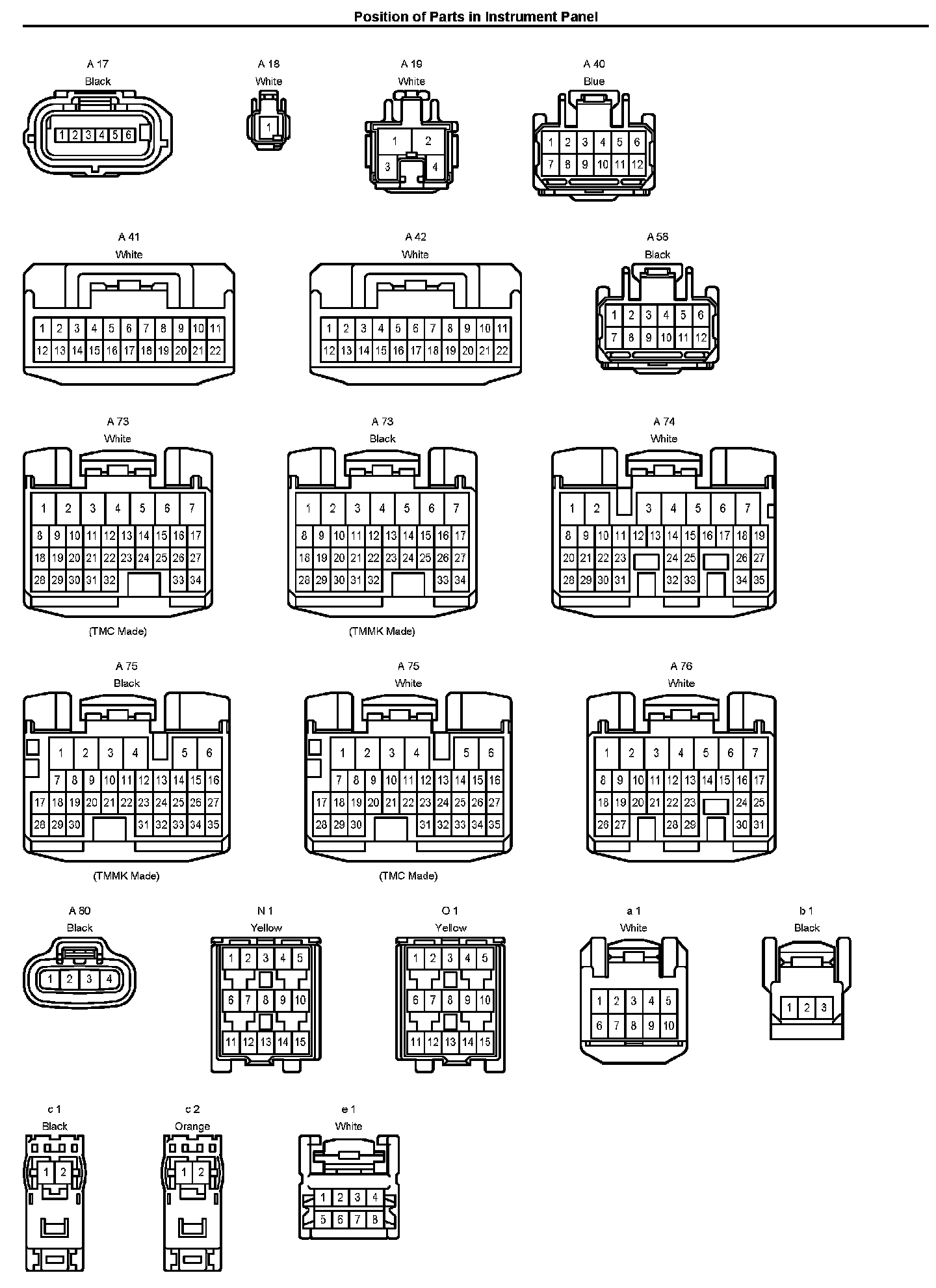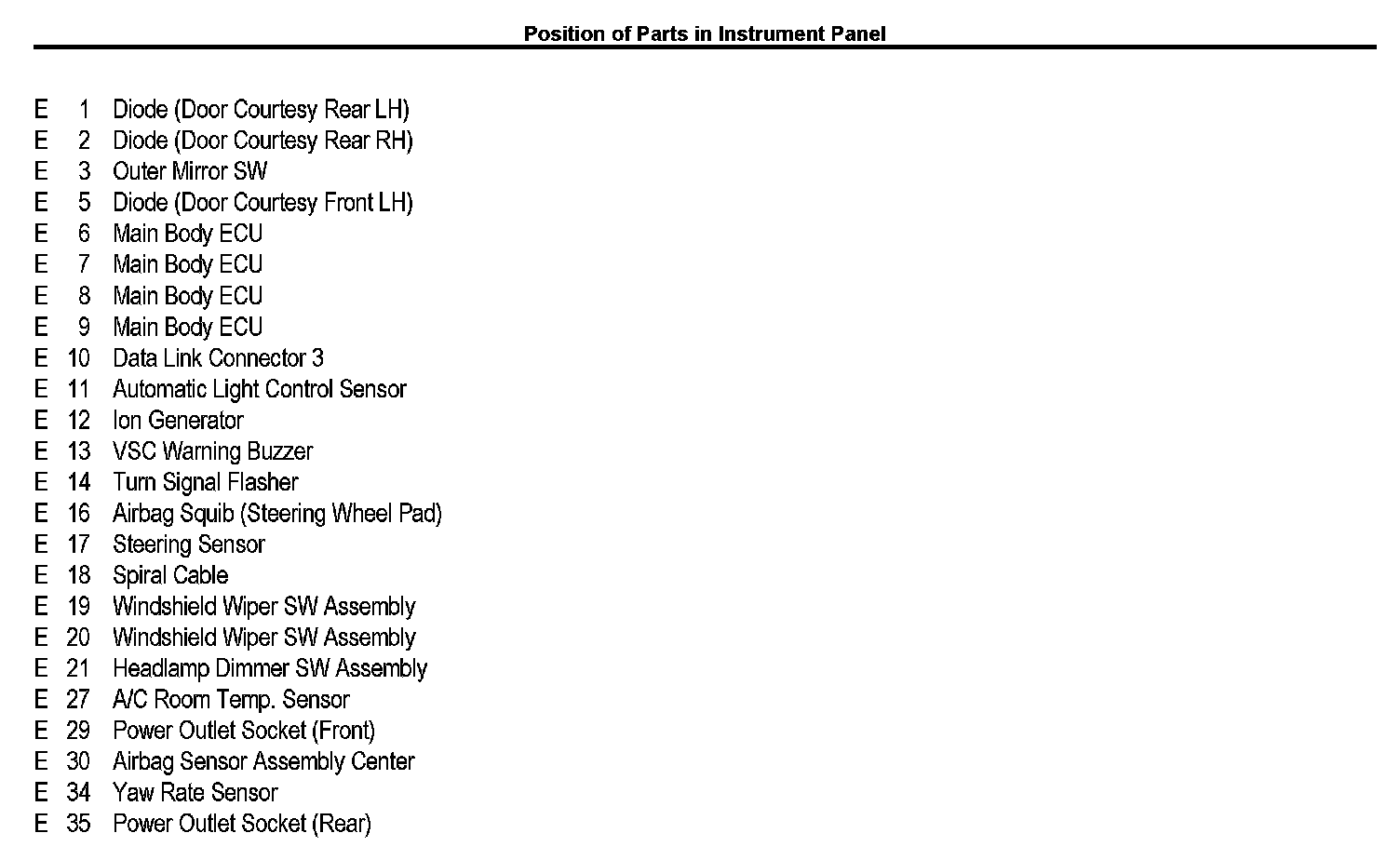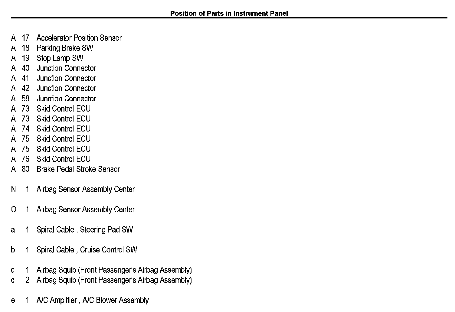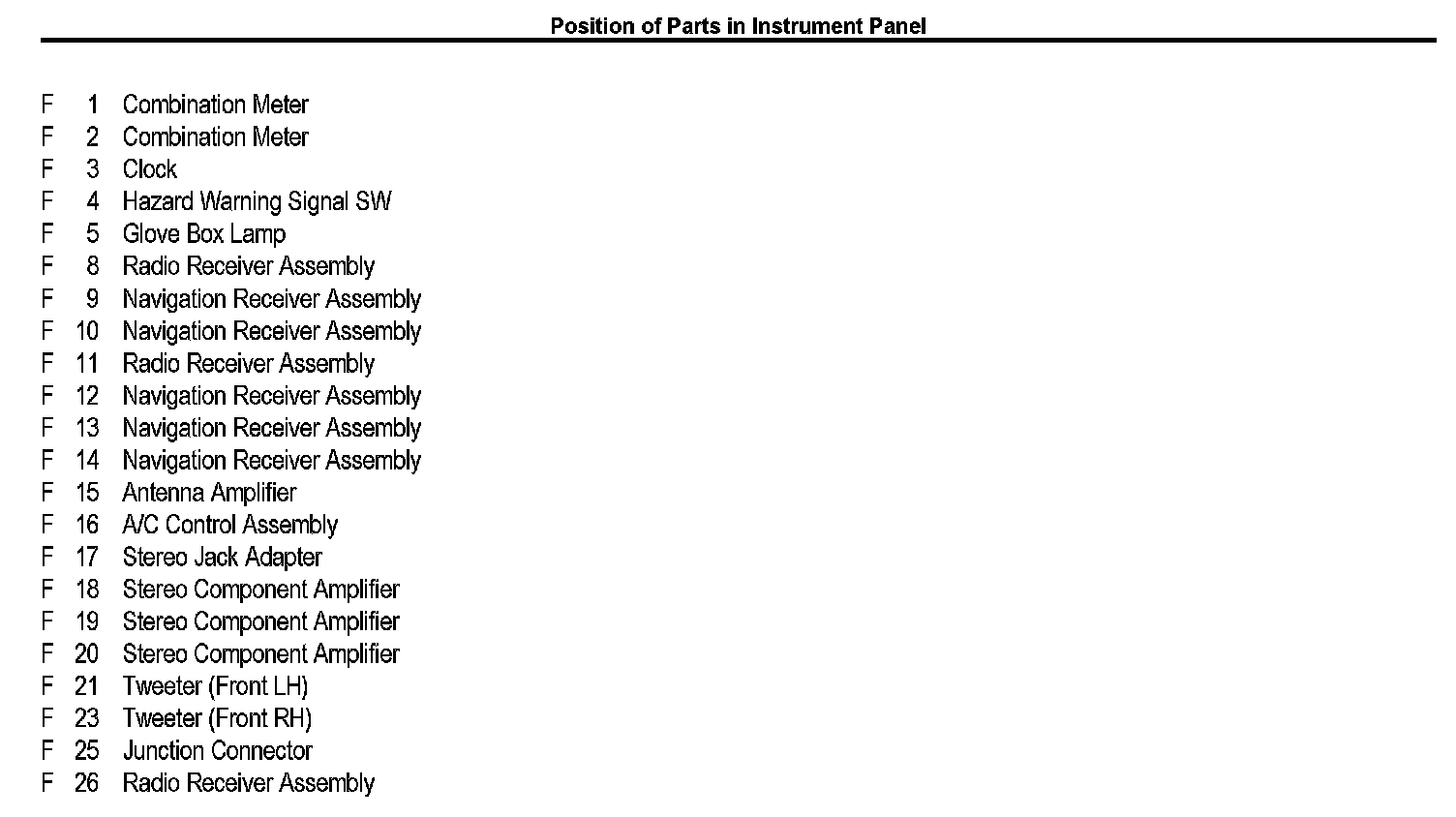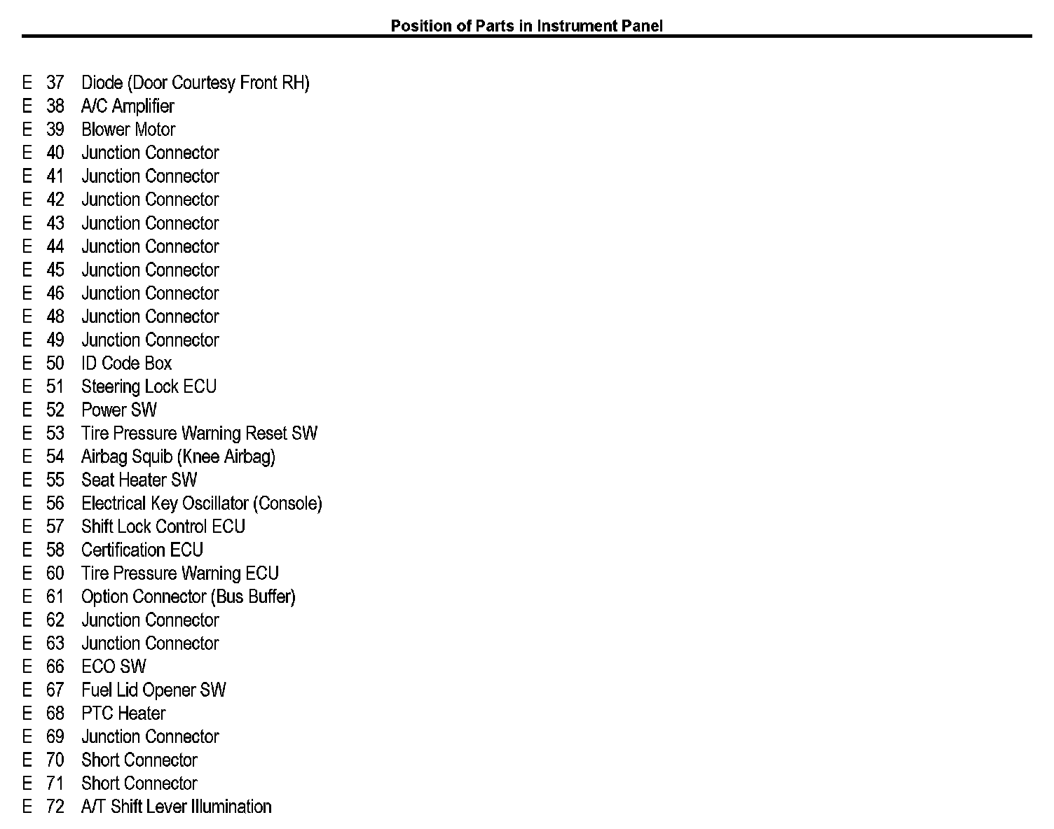 Position of Parts In Instrument Panel