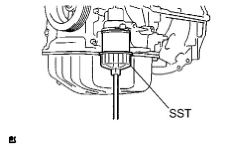 (a) Using a 12 mm hexagon wrench, install the oil filter union.