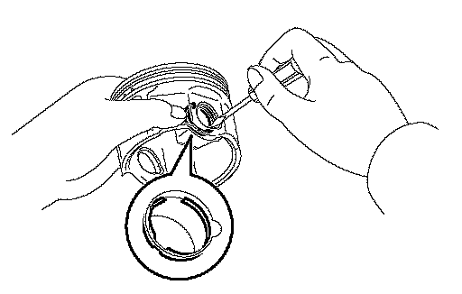 (d) Using a screwdriver, install a new snap ring on the other end of the piston pin hole.