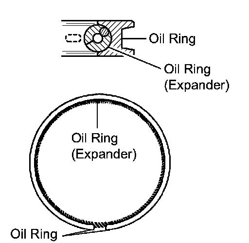 ^ Install the expander and oil ring so that their ring ends are at opposite sides.