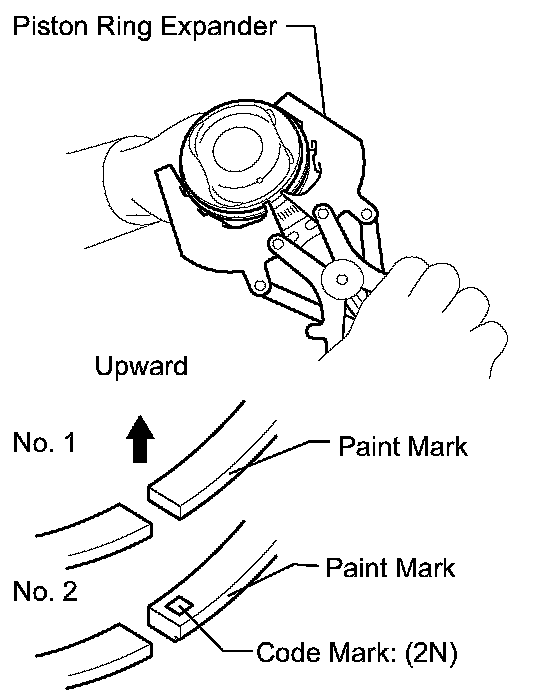 NOTICE: Install the compression ring No. 2 with the code mark (2N) facing upward.