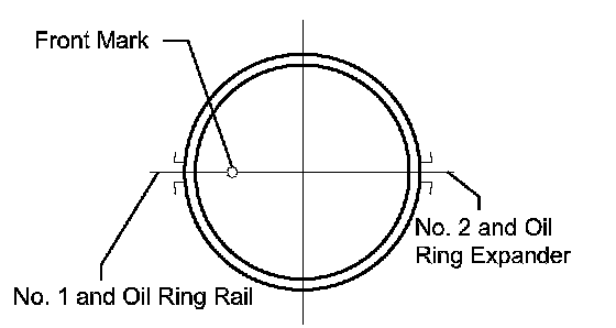(c) Position the piston rings so that the ring ends are as shown in the illustration.