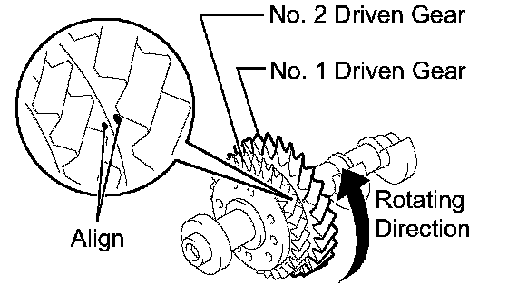 NOTICE: Confirm that the matchmarks on the No. 1 and No. 2 driven gears are matched.