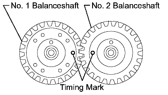 (b) Align the timing marks of the No. 1 and No. 2 balance shafts as shown in the illustration.