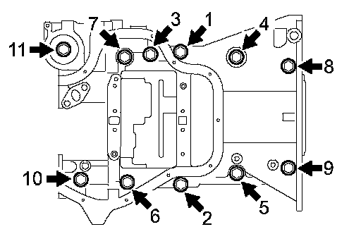 (g) Uniformly tighten the 11 bolts in the sequence shown in the illustration.