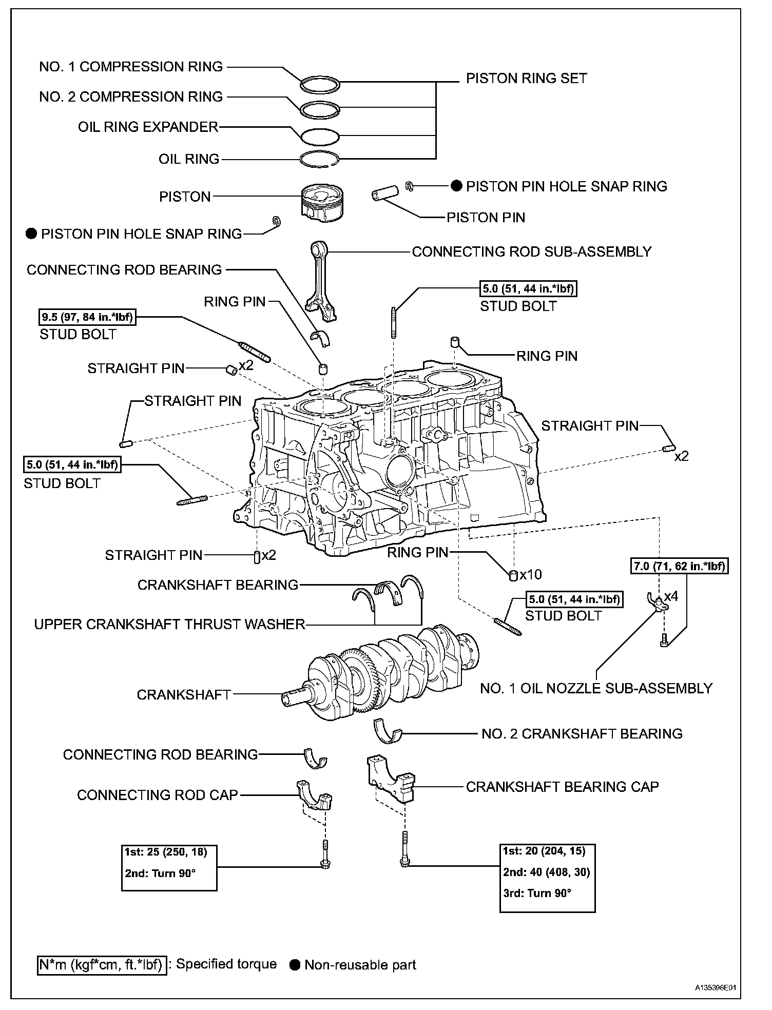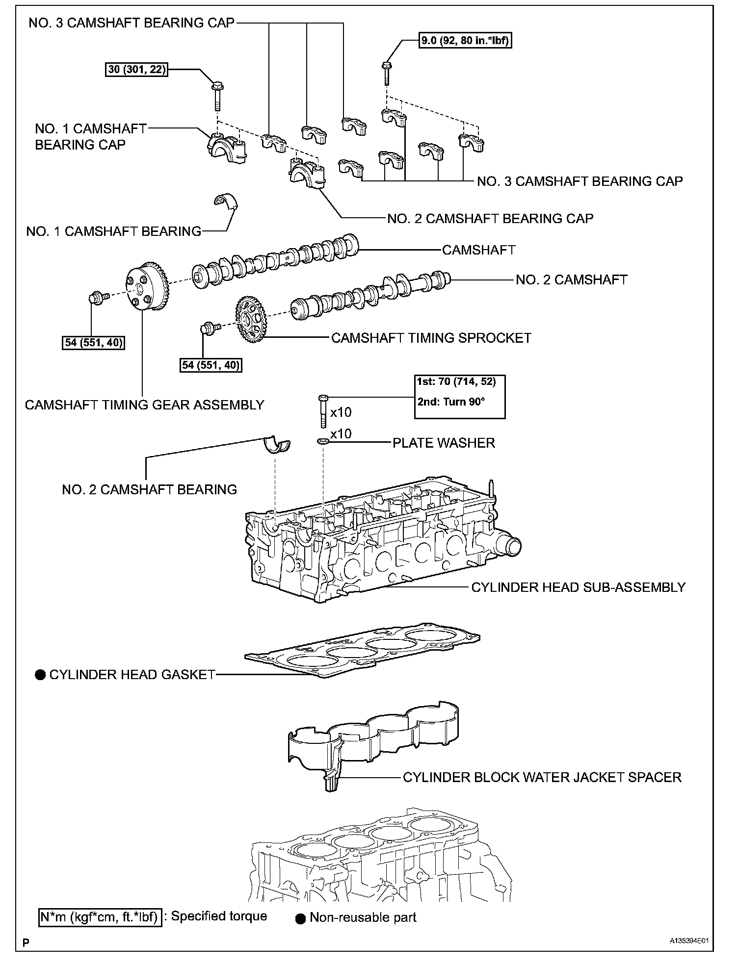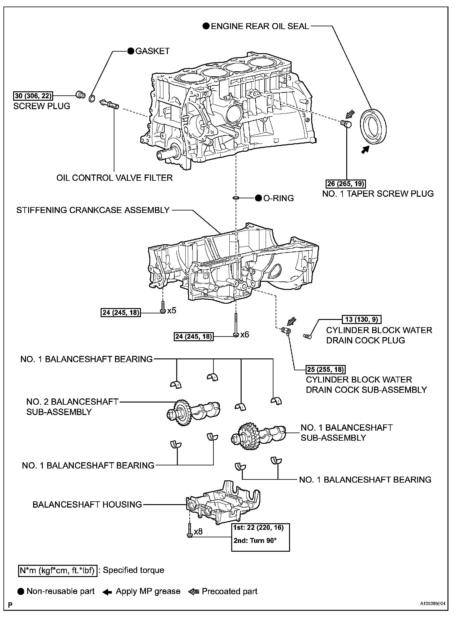 Torque: No. 1 bearing cap 30 Nm (301 kgf-cm, 22 ft. lbs.)