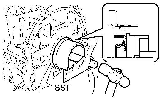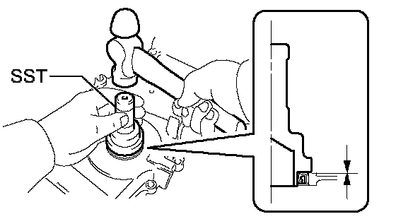 (a) Using SST and a hammer, evenly tap the oil seal until its surface is flush with the rear oil seal retainer edge.