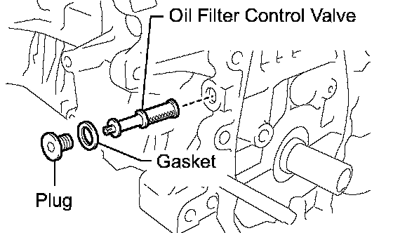 (b) Using an 8 mm socket hexagon wrench, install a new gasket and the oil control valve filter with the screw plug.