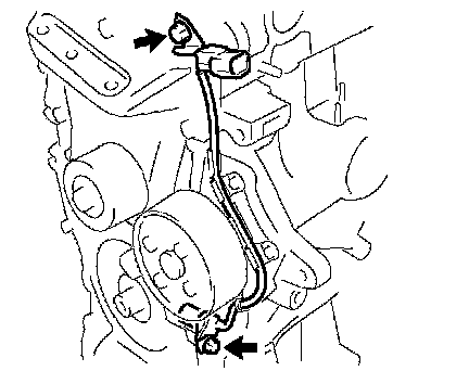 (d) Install the clamp of the crankshaft position sensor onto the water pump.
