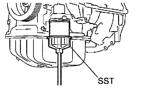 (a) Using SST, tap in a new oil seal until its surface is flush with the timing chain cover edge.
