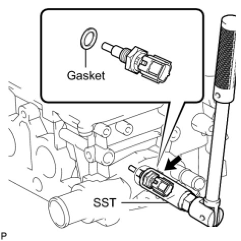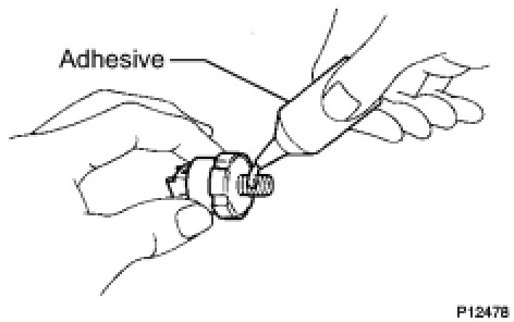 (a) Clean the threads of the oil pressure switch. Apply adhesive to 2 or 3 threads of the oil pressure switch.