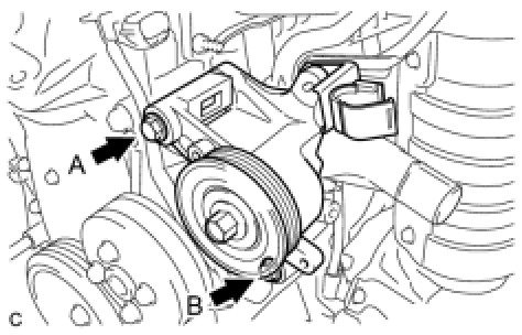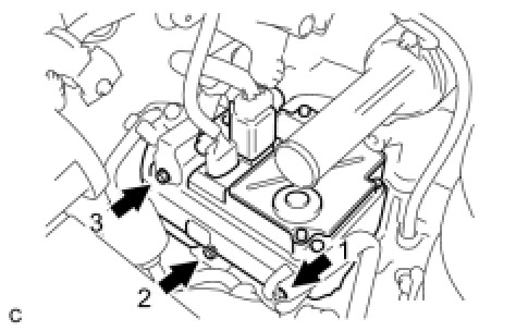 (b) Install the compressor with the 3 bolts by tightening the bolts in the order shown in the illustration.