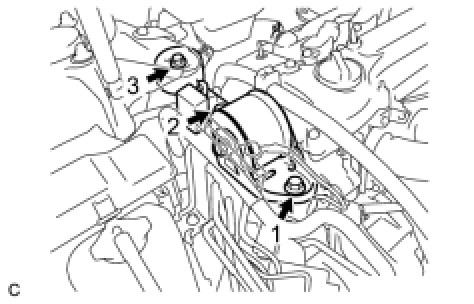 (a) Install the engine moving control rod by tightening the 3 bolts in the order shown in the illustration.