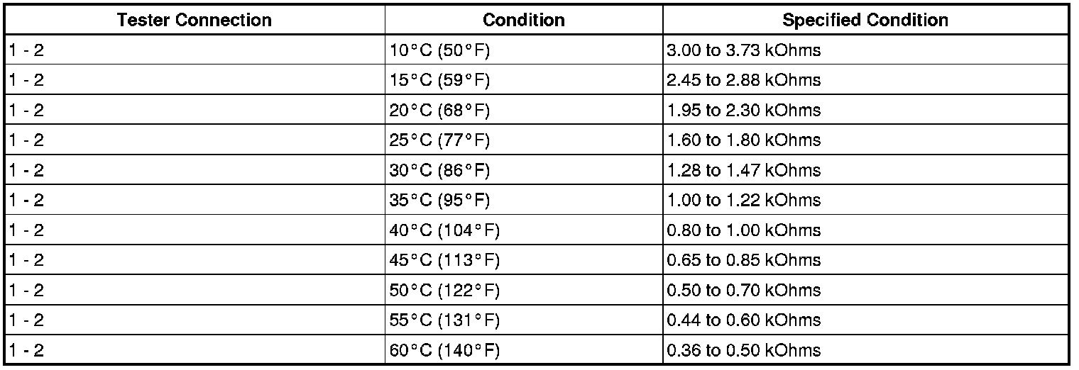 If the resistance is not as specified, replace the ambient temperature sensor.