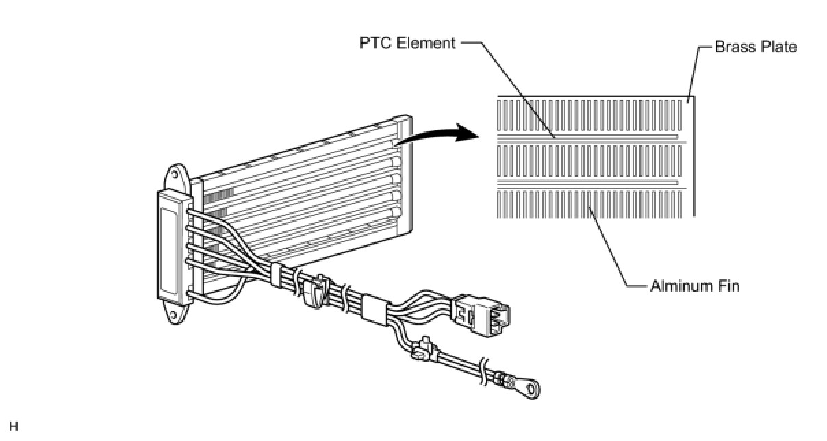 (b) The PTC heater consists of a PTC element, aluminum fin, and brass plate. When current is applied to the PTC element, it generates that to warm the air that passes through the unit.