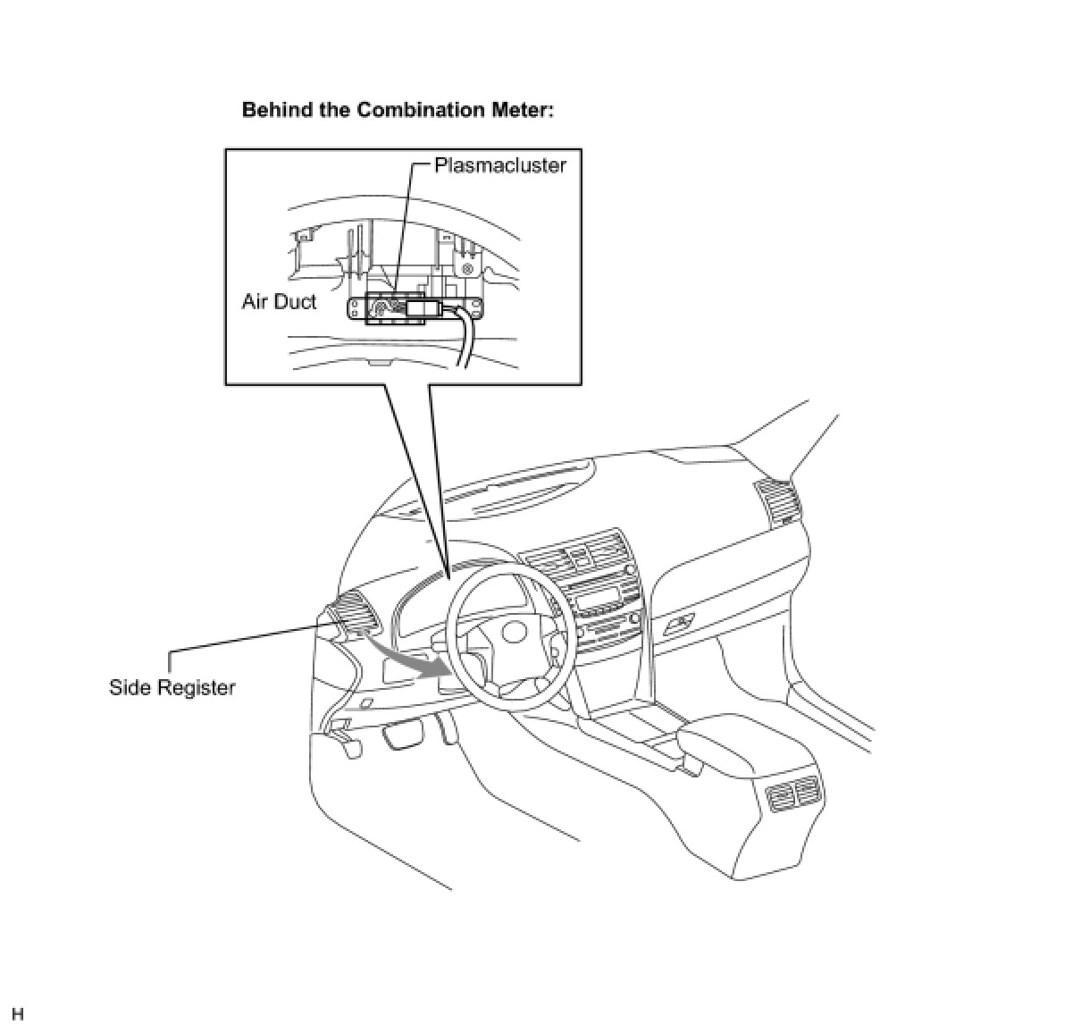 (1) A Plasmacluster ion generator is provided inside the air duct of the side register on the driver seat side to improve the air quality and comfort in the cabin.