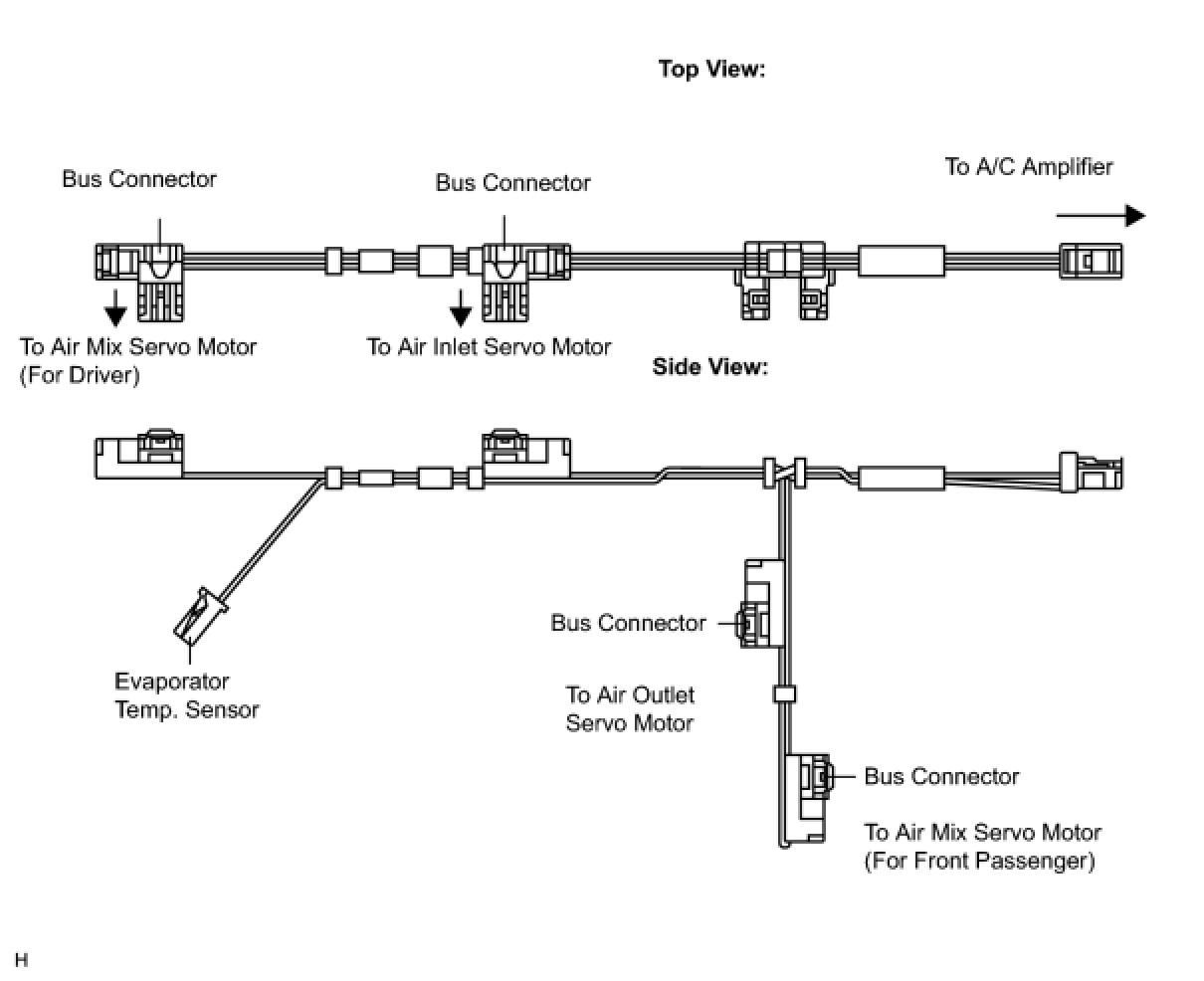 (a) A BUS connector is used in the wire harness connection that connects the servo motor from the A/C amplifier.