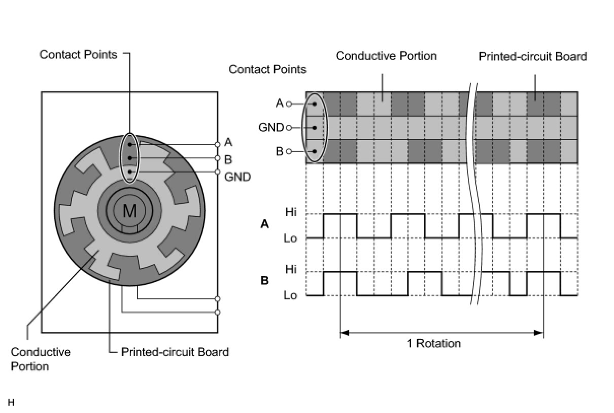 (a) The pulse pattern type servo motor consists of a printed circuit board and servo motor. The printed circuit board has three contact points, and transmits to the A/C amplifier two ON-OFF signals for the difference of the pulse phase. The BUS connector detects the damper position and movement direction with this signal.