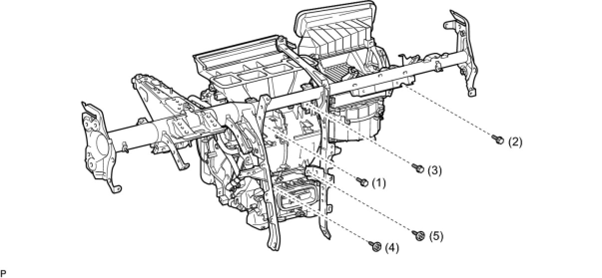 (a) Install the air conditioning unit assembly to the instrument panel reinforcement assembly with the 2 screws and 3 bolts.