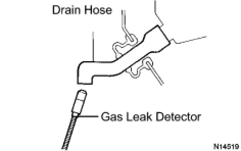(d) Bring the gas leak detector close to the drain hose with the detector's power off, and then turn the detector on.