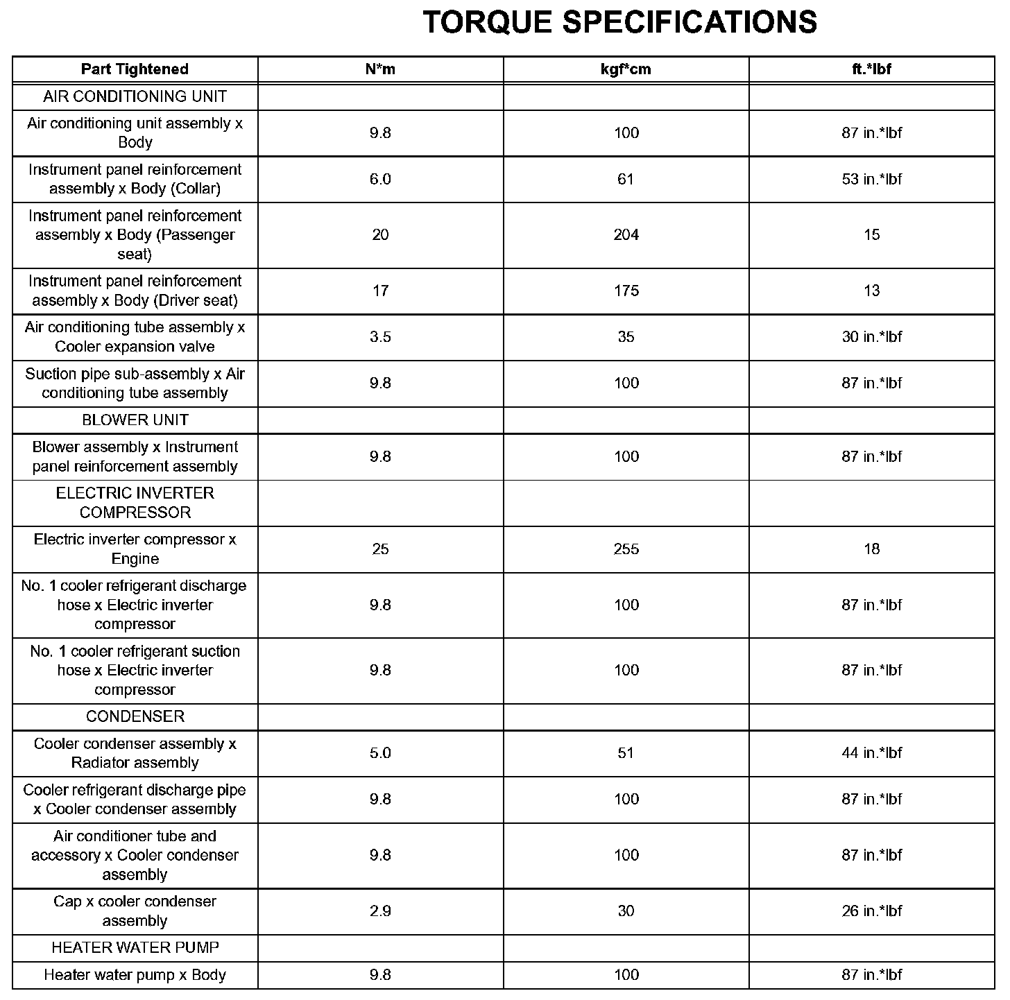 Air Conditioning - Torque Specifications: