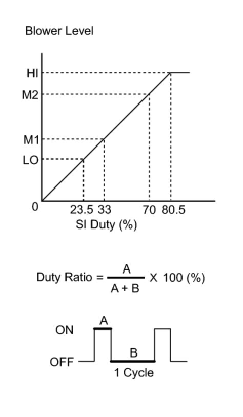 - The duty ratio is the ratio of the blower motor ON time (A) to the total of the blower motor ON and OFF time (A + B).