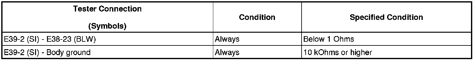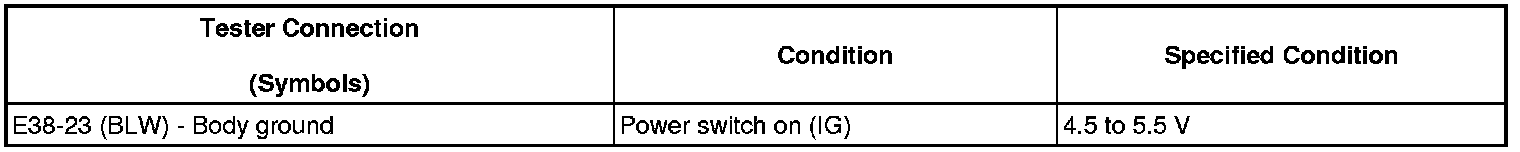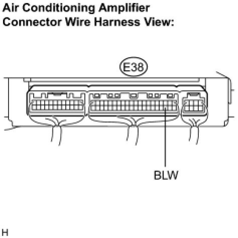 (e) Measure the waveform between terminal E38-23 (BLW) of the A/C amplifier and body ground.