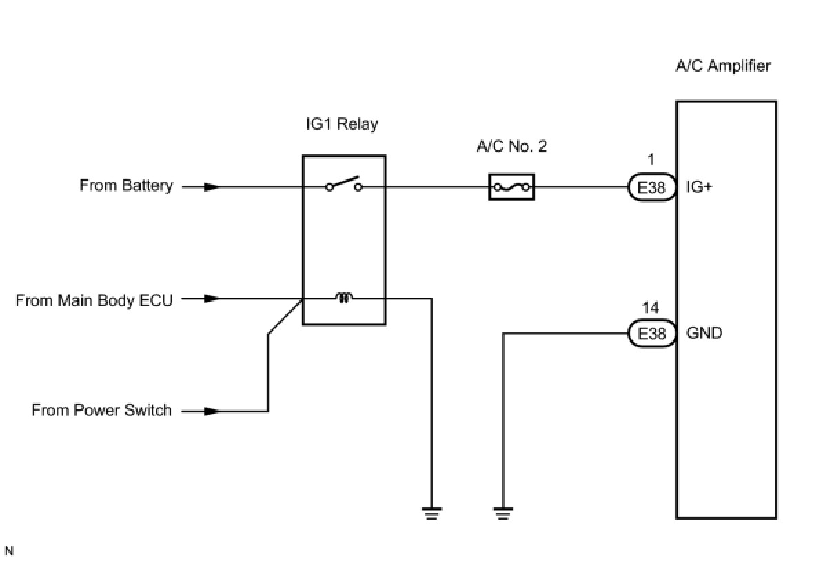The main power source is supplied to the A/C amplifier when the power switch is turned on (IG).