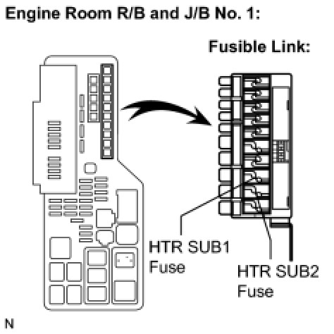 1. INSPECT FUSIBLE LINK (HTR SUB1, HTR SUB2)
