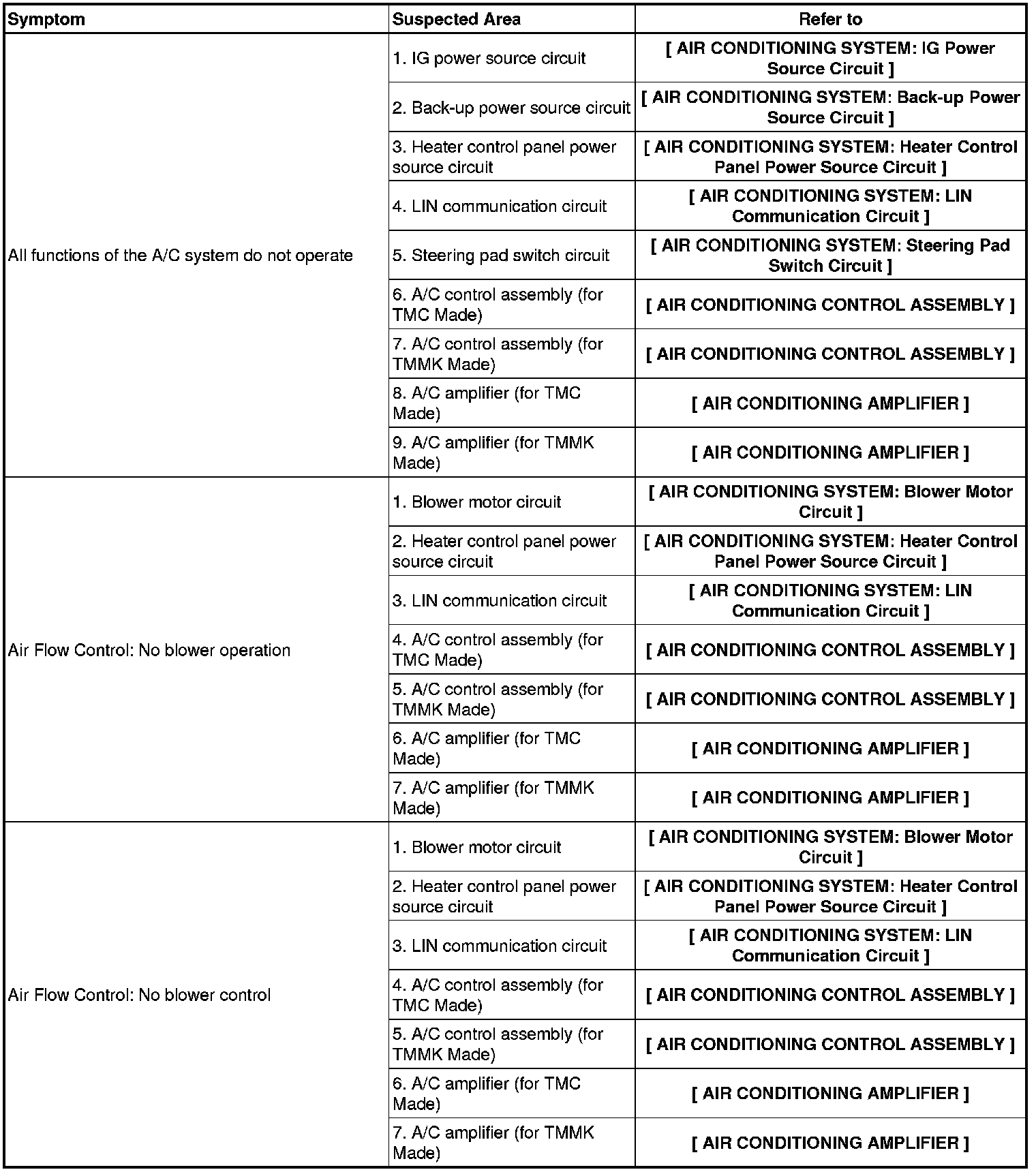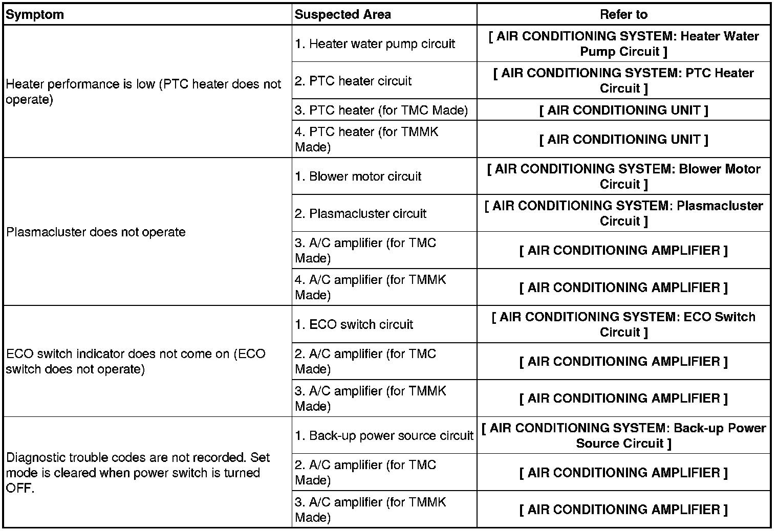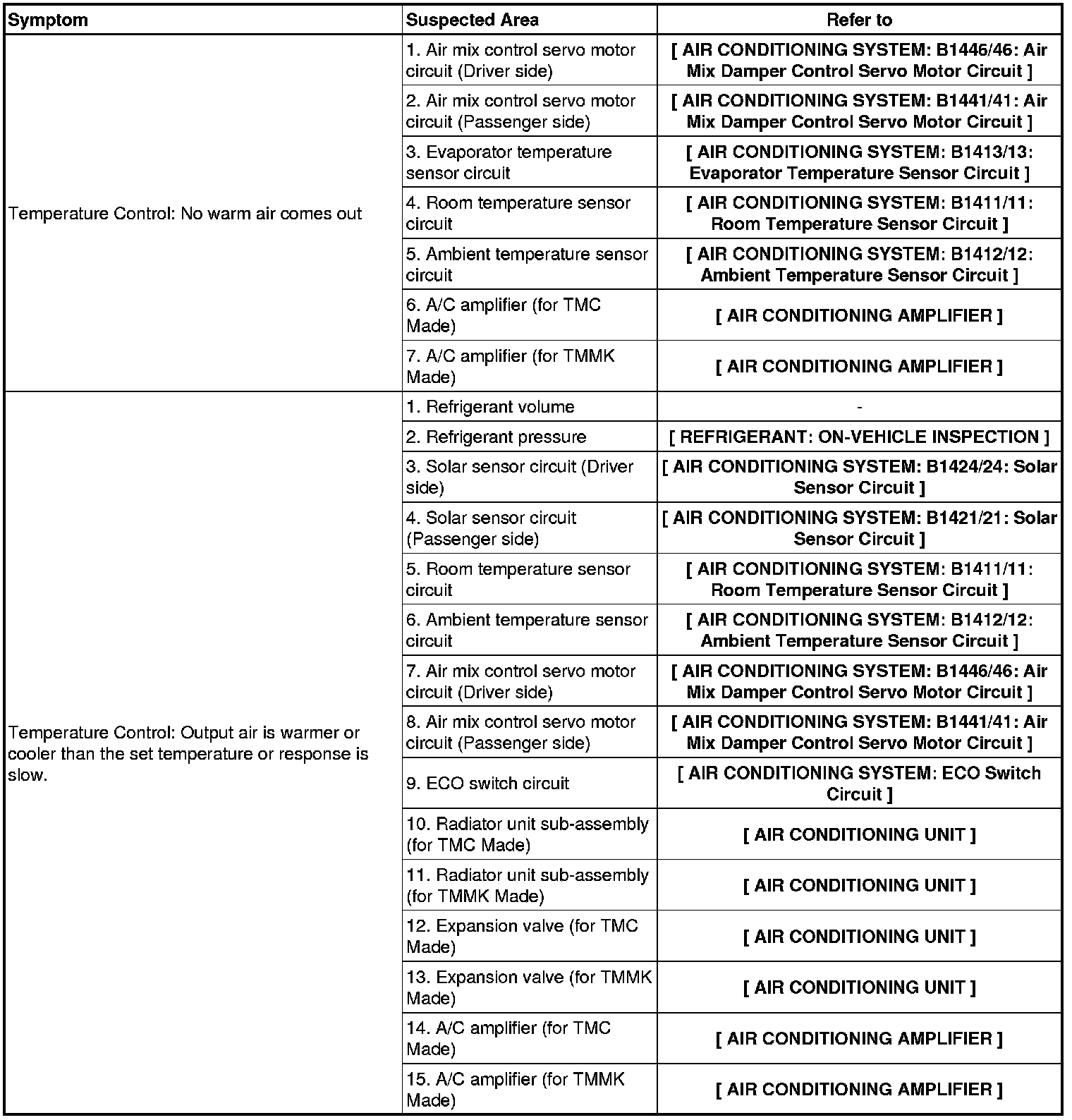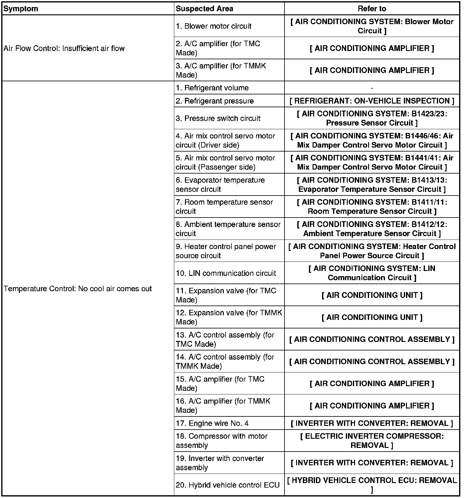 AIR CONDITIONING: AIR CONDITIONING SYSTEM: PROBLEM SYMPTOMS TABLE