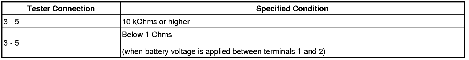 If the result is not as specified, replace the relay.