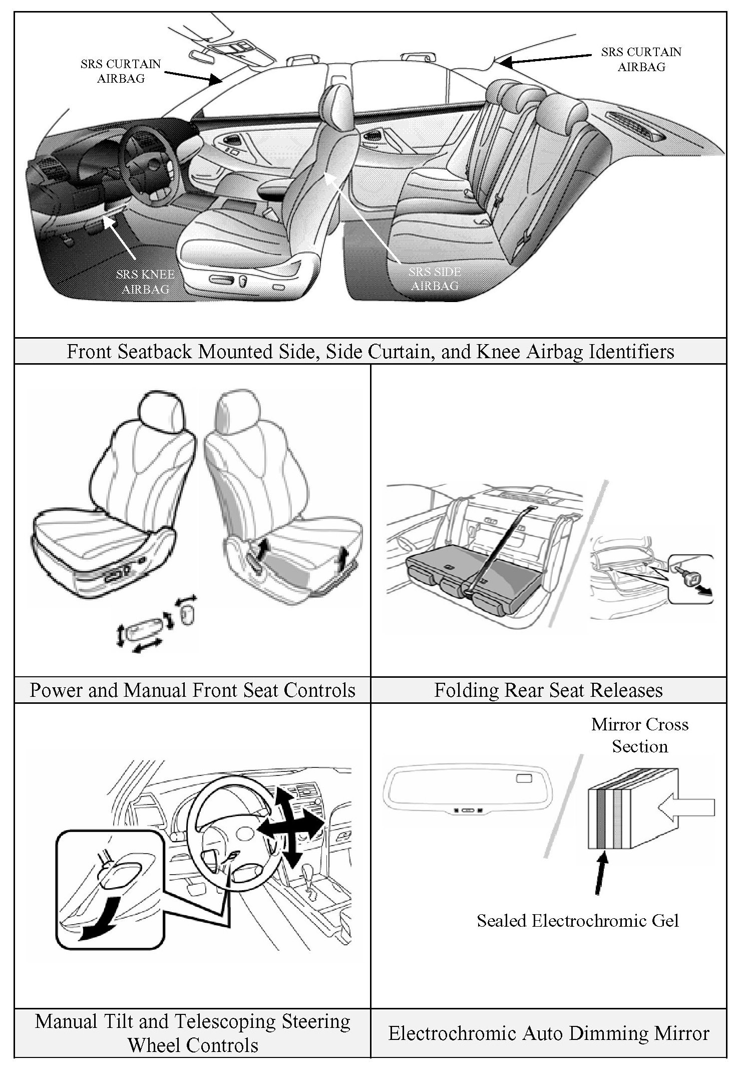- The CAMRY driver (optional passenger) power seat and standard passenger manual controls are shown in the illustration. Repositioning the power driver and passenger seats must be done prior to 12-Volt auxiliary battery disconnect.