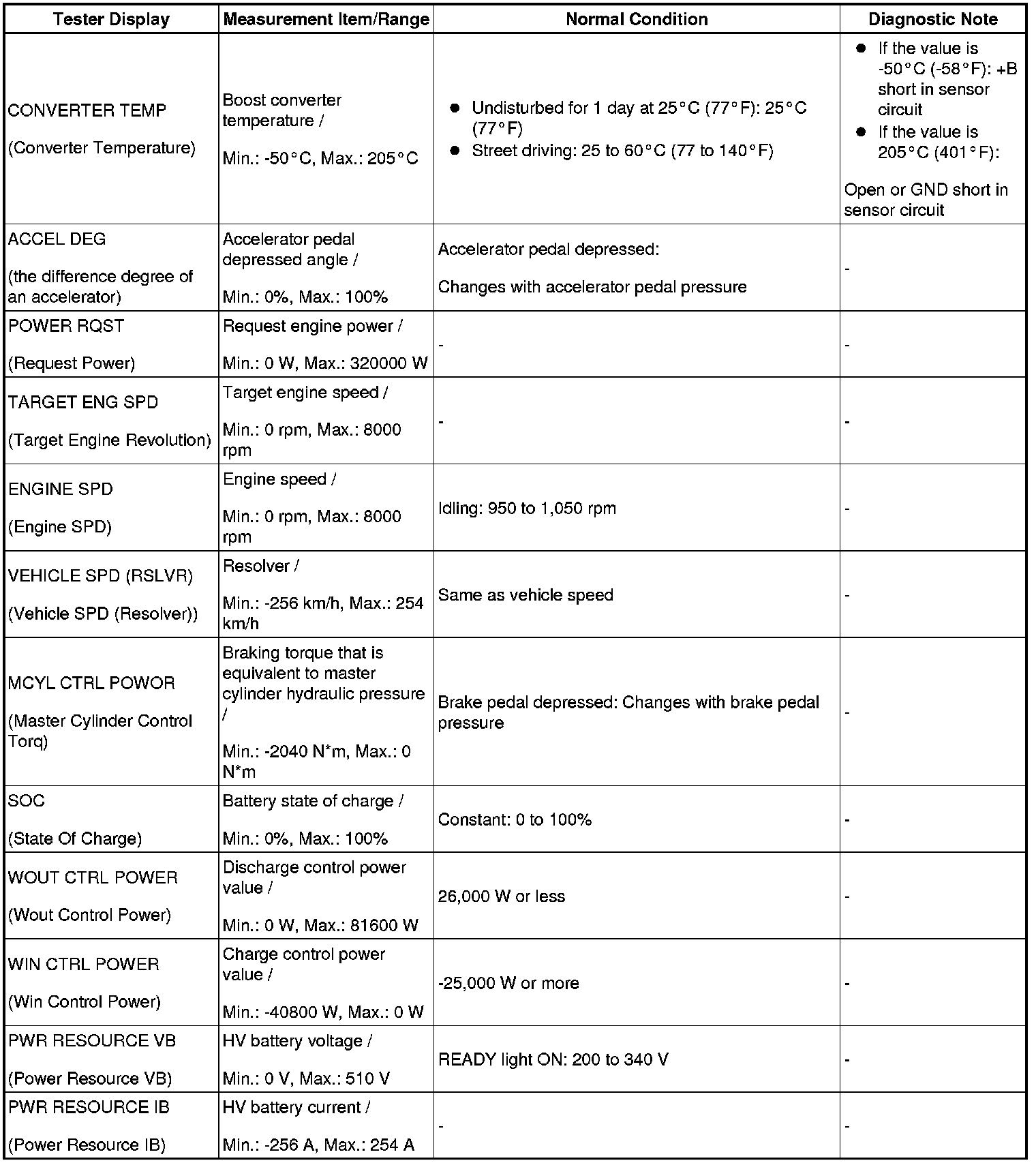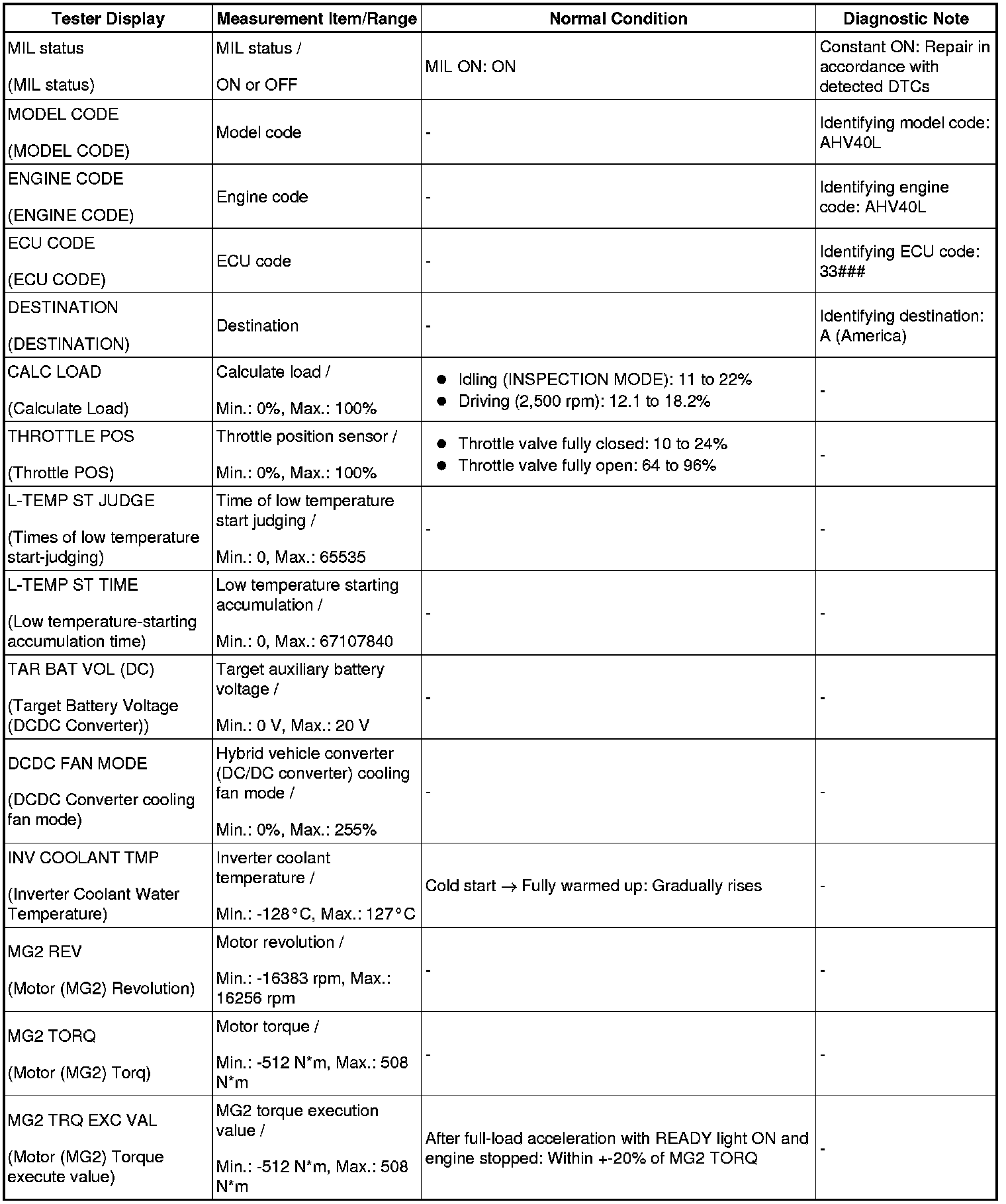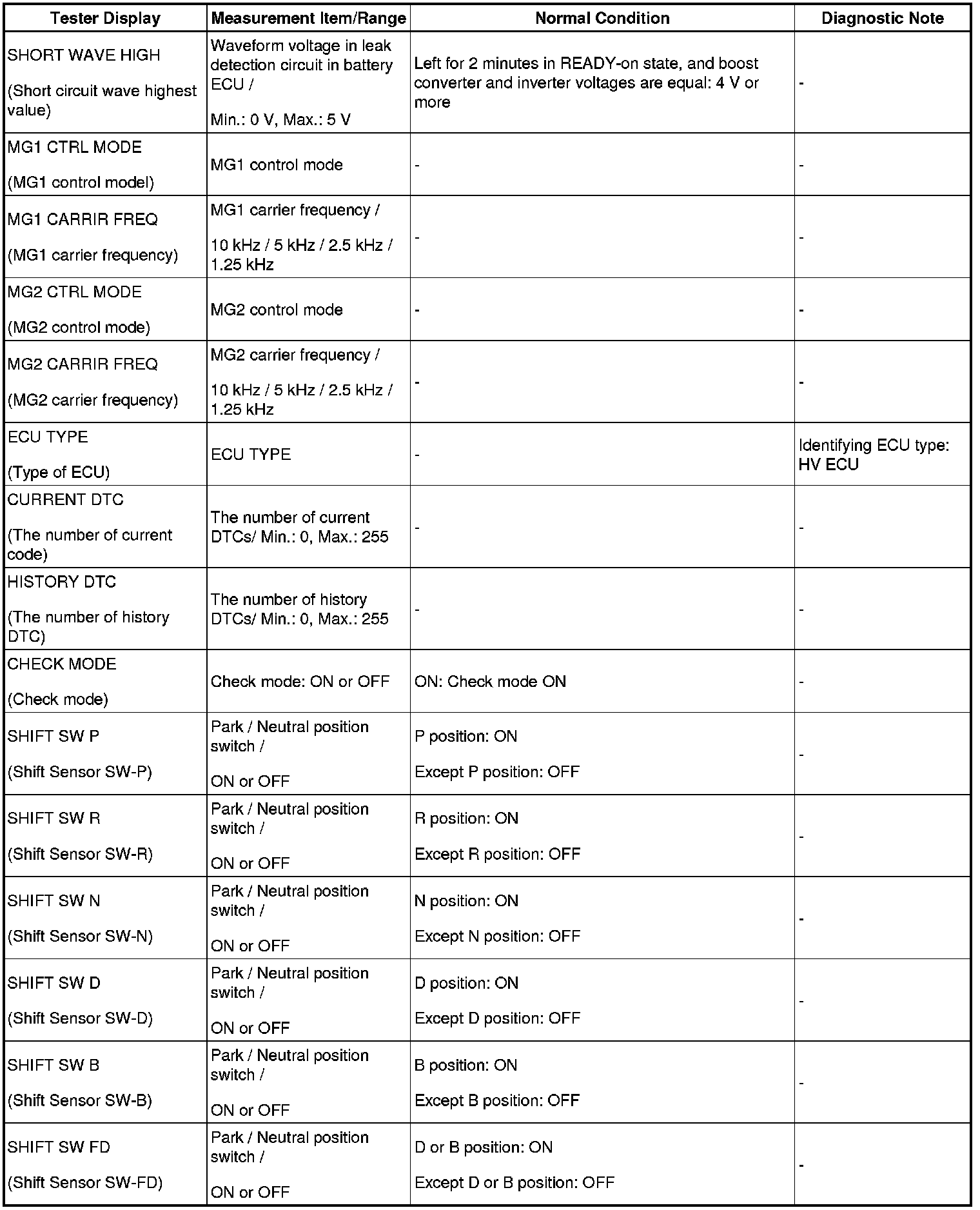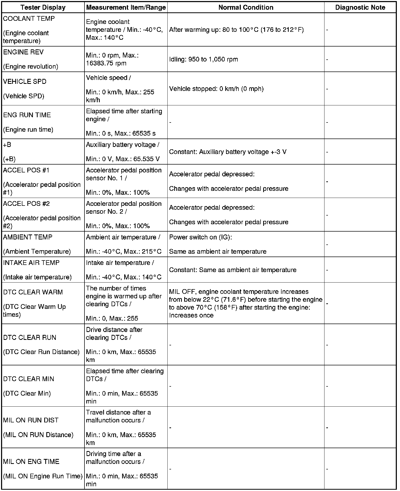 - Some data list values may vary significantly if there are slight differences in the environment in which the vehicle is operating when measurements are obtained. Variations may also occur due to aging of the vehicle. Due to these considerations, it is not always possible to provide definite values to be used for judgment of malfunctions. It is possible that a malfunction may be present even if measured values are within the reference range.