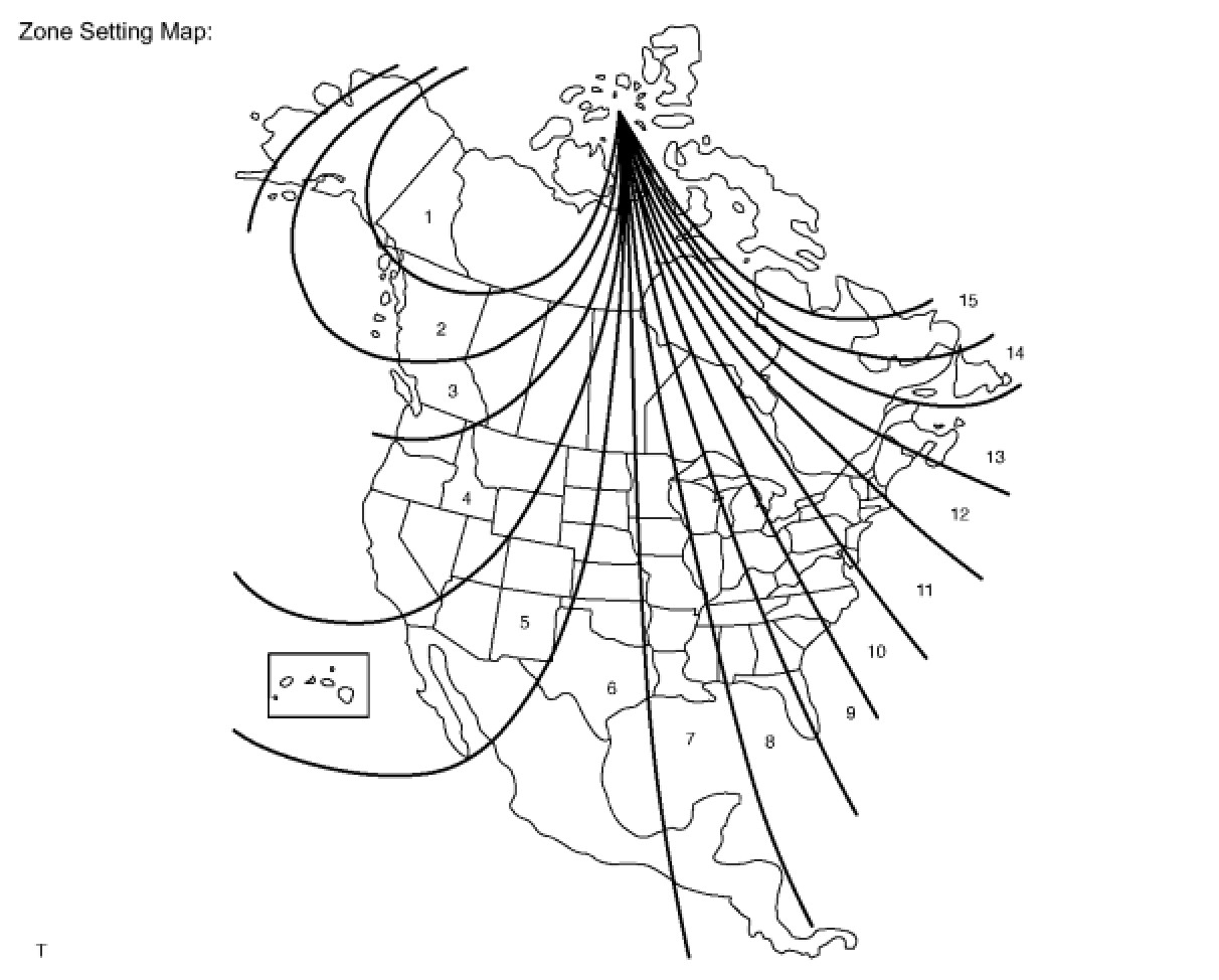 (b) The displayed number increases by 1 every time the COMP switch is pressed. Referring to the map, check the number for the area where the vehicle will be used and set the zone number.