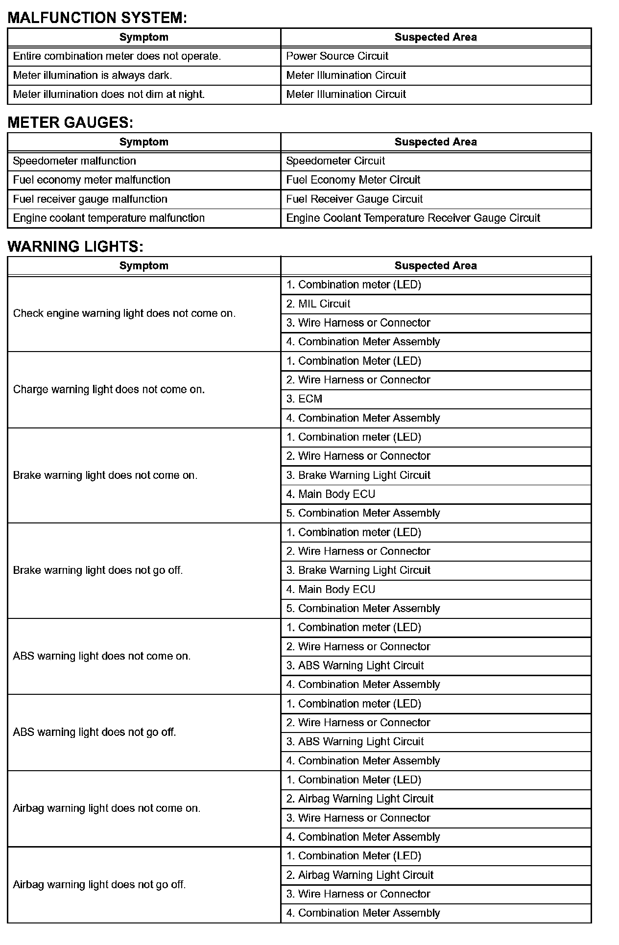 Problem Symptoms Table (Part 2):