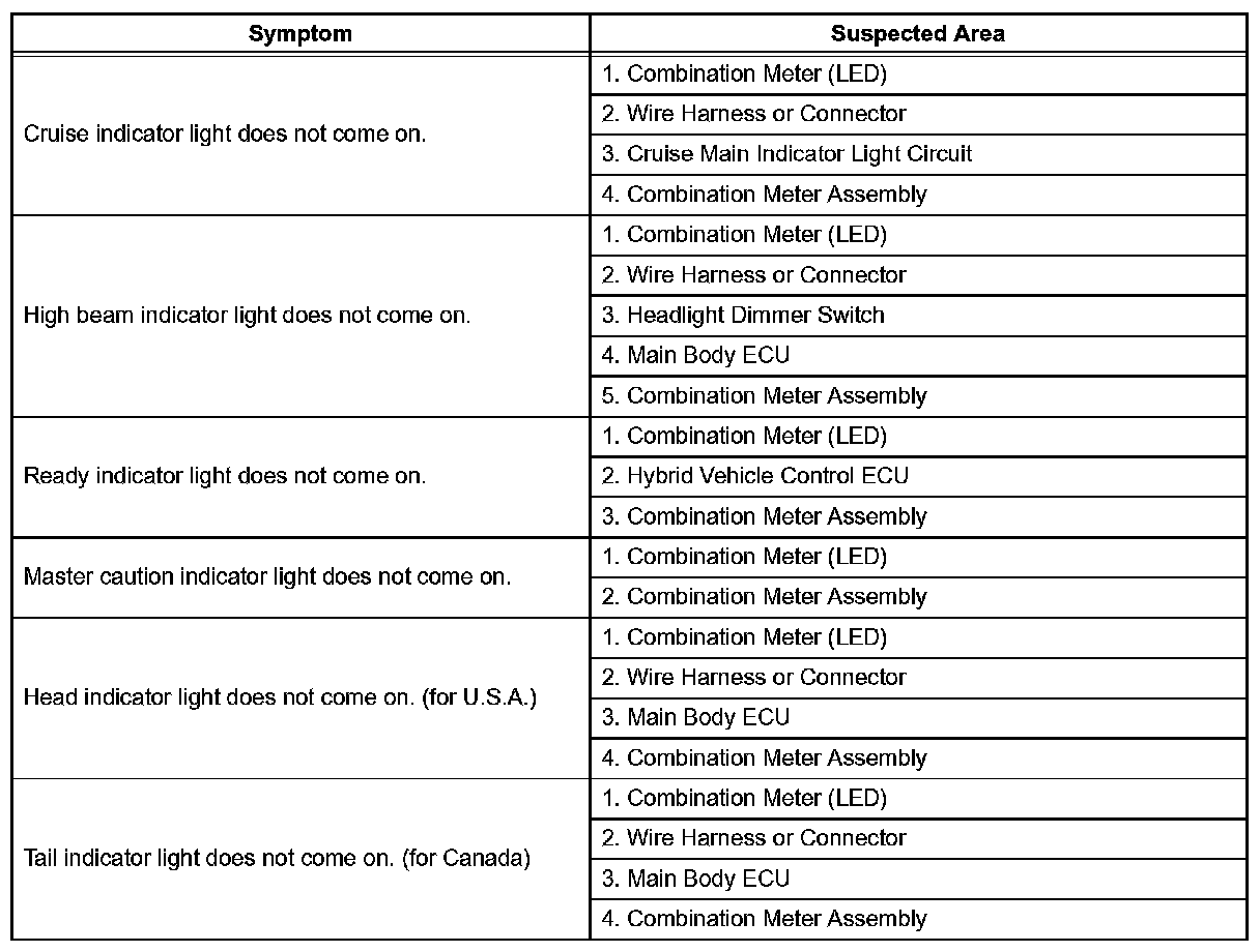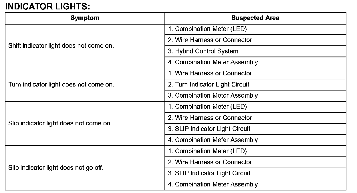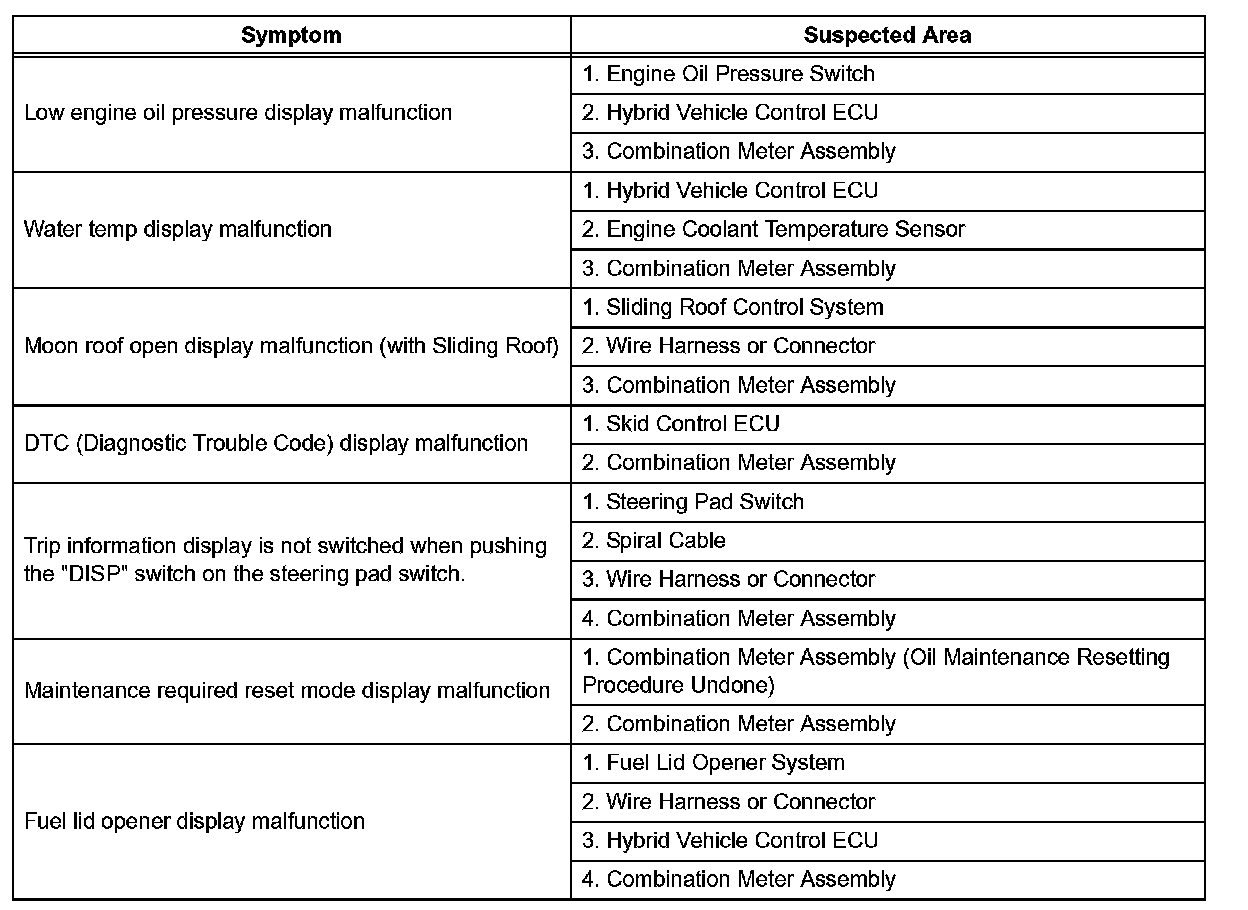 Problem Symptoms Table: