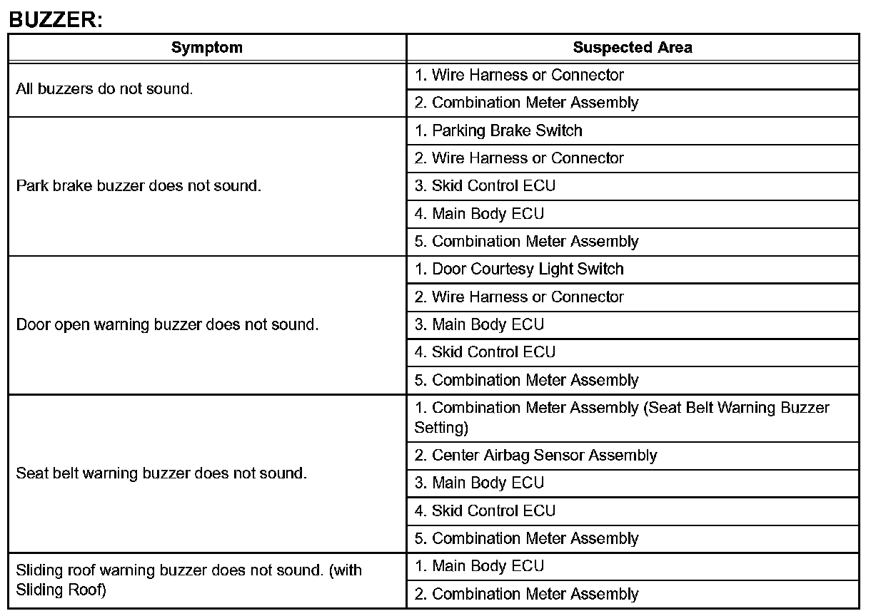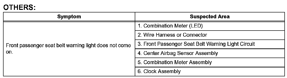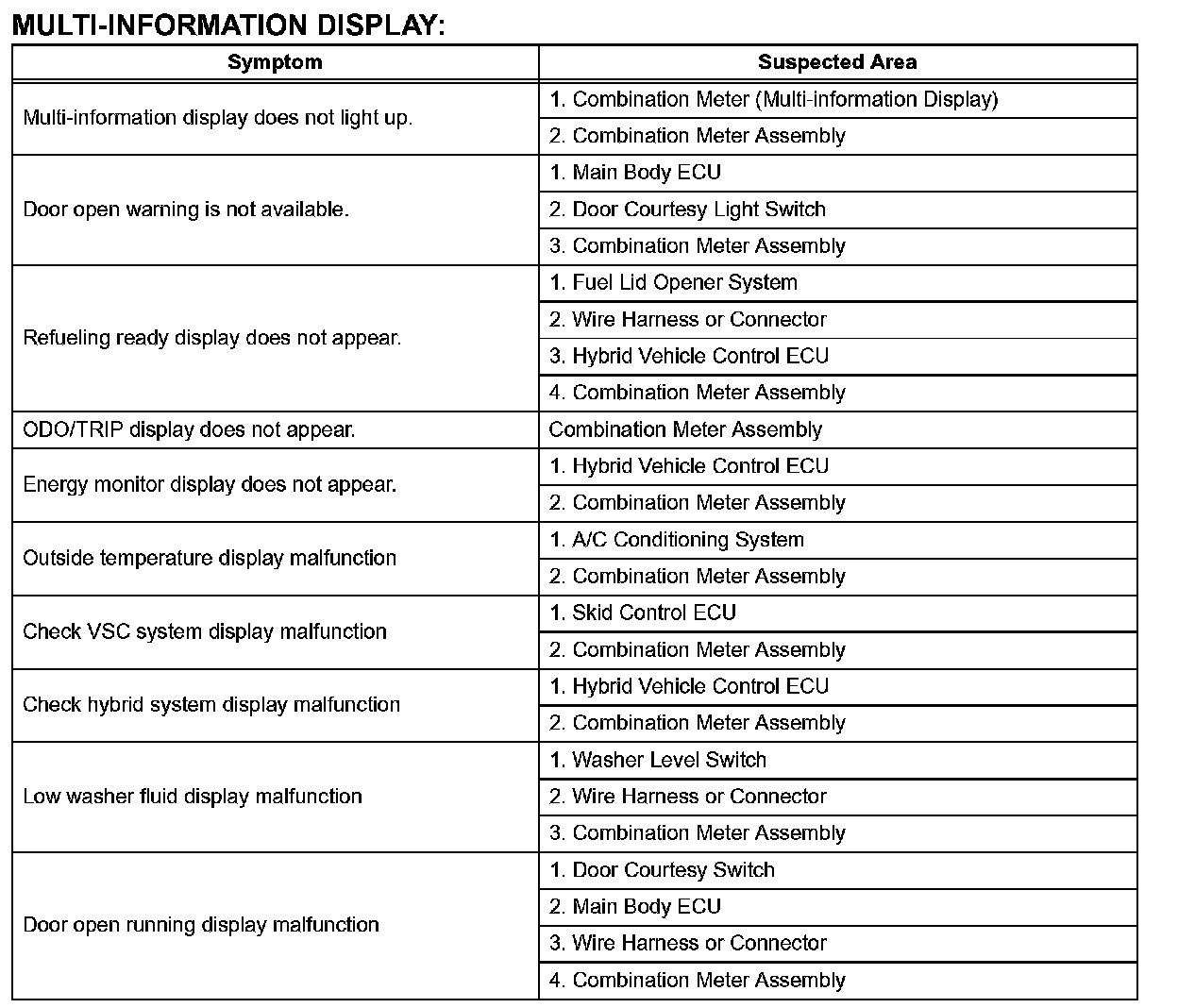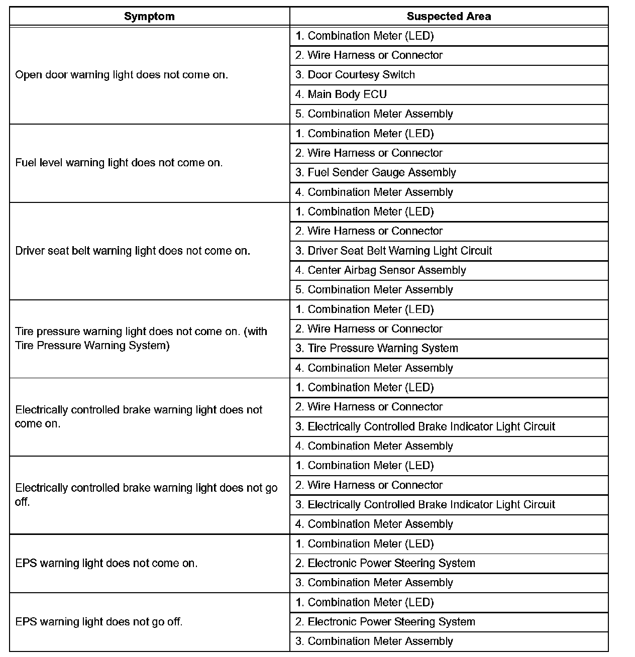 Problem Symptoms Table: