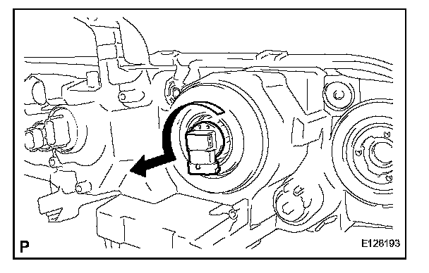 a. Turn the front turn signal light bulb and the front turn signal light socket in the direction indicated by the arrow and remove them as a unit.