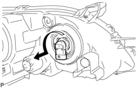 (a) Turn the front turn signal light bulb and the front turn signal light socket in the direction indicated by the arrow and remove them as a unit.