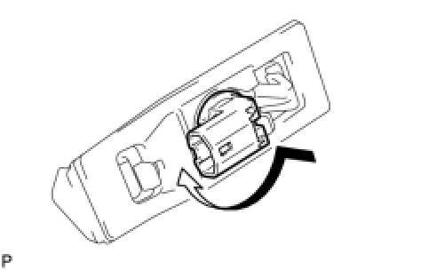 (b) Turn the license plate light bulb and the license plate light socket in the direction indicated by the arrow and install them as a unit.