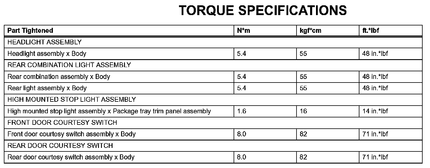 Lighting - Torque Specifications: