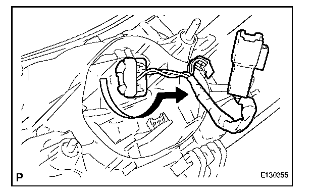 b. Turn the back up light bulb and rear light socket and wire in the direction indicated by the arrow and install them as a unit.