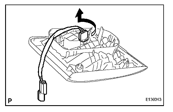 b. Turn the rear turn signal light bulb and the rear combination light socket and wire in the direction indicated by the arrow and disconnect them as a unit.