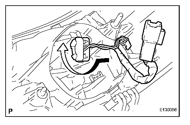 a. Turn the back up light bulb and the rear light socket and wire in the direction indicated by the arrow and remove them as a unit.